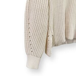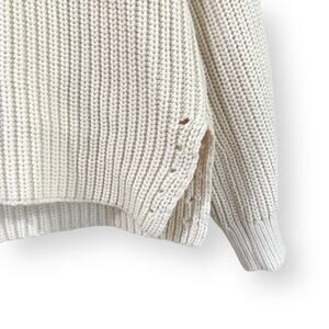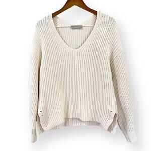 Everlane Sweater Womens L Ivory Cotton Chunky Knit V Neck Long Sleeve Pullover