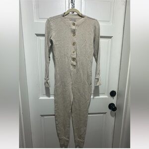 Everlane Sz. Small Waffle Knit 1/2 Button Up One Piece Pajama Heathered Tan