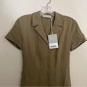 Chic mini dress by Everlane. Features a button-down front. Short sleeves and collared neckline. Perfect for casual outings.