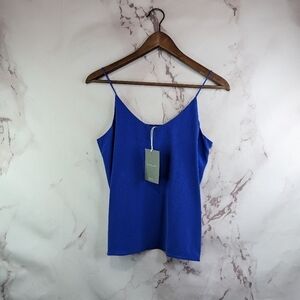 Everlane Tank Top XS 0 Women Silk Blue Crop Blouse The Clean Cami Spaghetti NEW