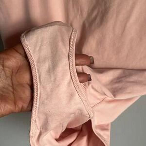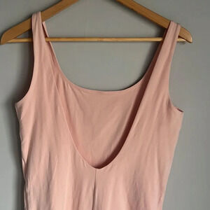 no marks, stains or flaws. This tank bodysuit in a light ballet pink from Everlane is pull-on style with no snaps. Scoop neck and low deep cut back. Constructed of 92% Supima Cotton and 8% Elastane for stretch and has soft, substantial weight, fully opaque