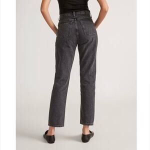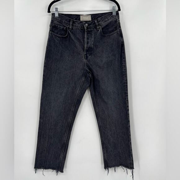 Everlane The 90’s Cheeky Jean Cropped Ankle Raw Hem Frayed Edge Buttons Black Gray Grey Size 27