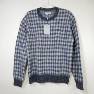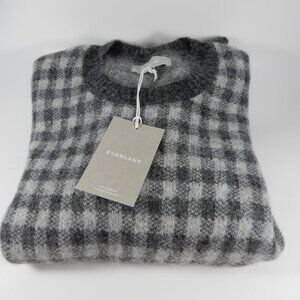 Everlane The Alpaca Crewneck Sweater Size L Heather Grey Buffalo Check NEW