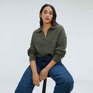 Everlane The Alpaca Waffle-Stitch Polo Sweater Pullover Wool Blend Green XS