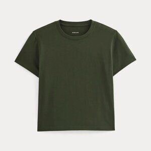 Everlane The Box Cut Tee in Essential Cotton in Dark Green, Size Small