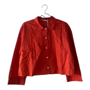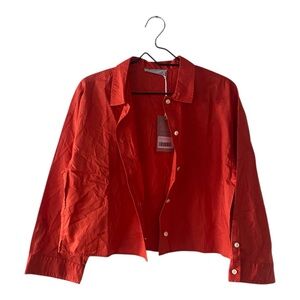 Everlane The Boxy Crop PJ Top Orange Cotton Pajama Button Up Shirt Size Small