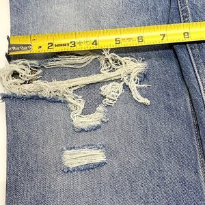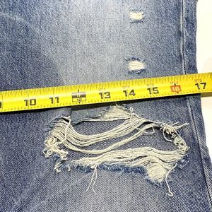 This is a pre-owned pair of Women's Everlane The Cheeky Jeans in a Size 30 (Actual 32x28). These jeans are in good condition with light wear and no stains. The jeans have intentional heavy distressing/holes at the knees, raw hems, and a button-fly. The jeans have a high rise and fall above the ankle. The cotton denim is medium weight and doesn't have much stretch to it. I encourage you to enlarge the photos to view small details and to review the measurements on photo #13 to determine fit. If you have any questions about these jeans, please ask!