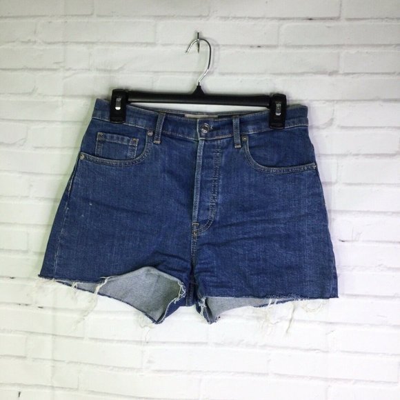 Up for grabs is a preowned Everlane The Cheeky Short Denim Jean Shorts Blue Raw Hem Cut Off Women's Size 27. Clean overall with some discoloration on the inner pockets from normal wash and wear! No holes or tears. Measurements Laying flat are included in photos, PLEASE compare them to your own for proper fit! Please refer to all photos. Ask any questions prior to purchasing. Thanks!