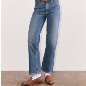 This piece features a high rise, low-stretch, relaxed fit with a zip fly, and relaxed, full length straight leg.