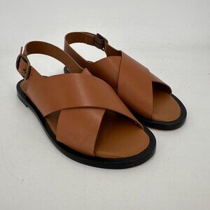 Everlane The City Crossover Sandals sz 5 Desert Tan Leather Ankle Strap Buckle