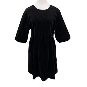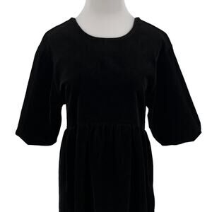 Everlane The Corduroy Mini Dress in Black Puff Sleeve Oversized Babydoll Size M