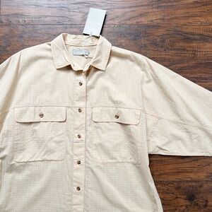 Fabulous button front oversized shirt by Everlane. “The Cotton Tourist Shirt” style in orange & pale green plaid. 100% cotton. Bust 44“, front length 30” / back length 32“. Size XS, brand new with tags.