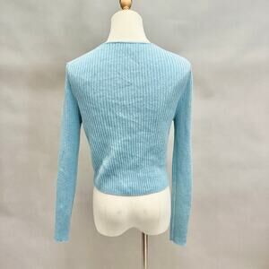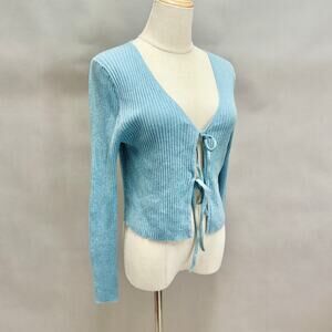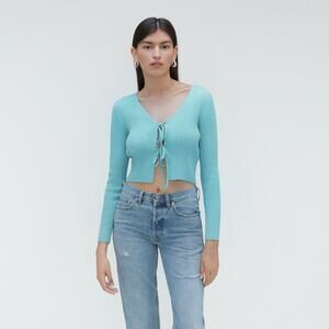 The Cotton-Merino Front-Tie Top features a deep V-neckline, an long-sleeve design, a bra-friendly front tie, and a cropped shape. Plus, it's made of breathable, lightweight 55% Responsible Wool Standard (RWS) wool and 45% organic cotton—making it ideal for warm-weather days.