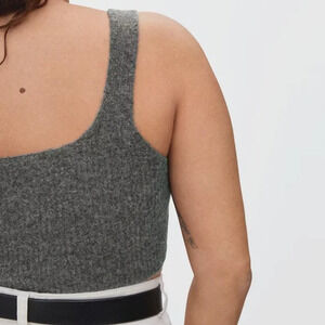 Everlane The Cozy Stretch Crop Tank Heathered Charcoal Size Small Wool Blend NWT