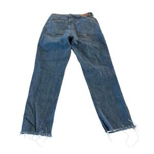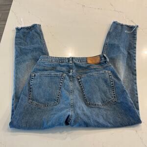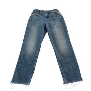 In good used condition. No holes or stains. Mid rise. Zipper fly with a button. 27" inseam. Raw hem. Women's size 27 Ankle.