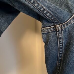 Stock photo is the right Jean from a fit perspective but I’m selling a different wash. Mine are more medium shade and have a distressed hem. Ankle length. Super cute for all seasons and very flattering.