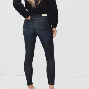 Dark Wash high rise jean with skinny crop fit and curvy waist line to accentuate hips. Have a good amount of stretch.