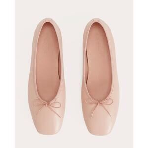 Everlane The Day Ballet Flat Leather Light Pink Square Toe Bow Slip On Size 8.5