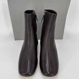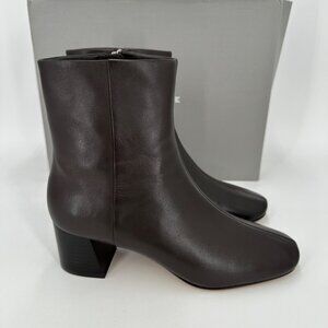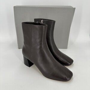 Everlane The Day Boot Dark Brown Leather size 7 Side Zip Ankle Bootie Square Toe