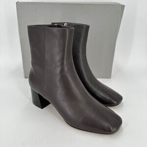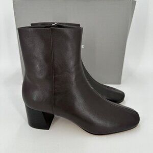 Everlane The Day Boot Dark Brown Leather size 8 Side Zip Ankle Bootie Square Toe