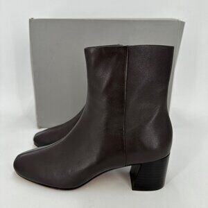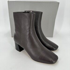 Everlane The Day Boot Dark Brown Leather sz 7.5 Side Zip Ankle Bootie Square Toe