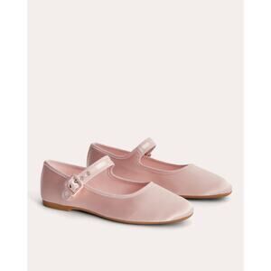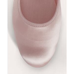 Featuring a round toe, adjustable buckle strap with recycled metal eyelets, webbing trim, and rubber outsole. Designed in recycled polyester satin with a polished finish. Heel height: 8mm. Material: Recycled polyester satin upper, rubber sole. Made in Vietnam. Professionally leather clean or spot clean. Fits true to size