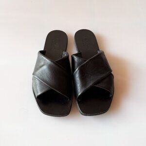Everlane The Day Crossover Leather Slide Sandals in Black 8.5 Made in Italy