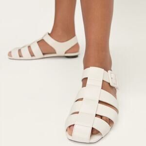 Everlane, white fisherman sandals, canvas leather sandals, flat summer sandals, minimalist sandals, white leather sandals, capsule wardrobe, square toe sandals, adjustable strap sandals, classic white sandals, vacation sandals, workwear chic, timeless summer shoes, neutral sandals