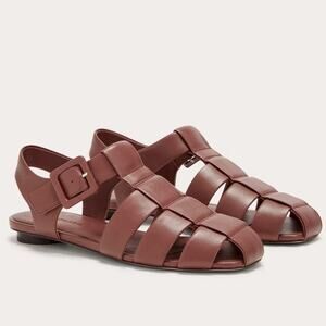 Elevate your wardrobe with the Everlane The Day Fisherman Sandal in the versatile Rum brown shade. Crafted from luxuriously soft Nappa leather, these sandals feature a square toe, adjustable buckle straps, and a padded insole for all-day comfort and style. Perfect for casual summer outfits, minimalist looks, or chic vacation wear.