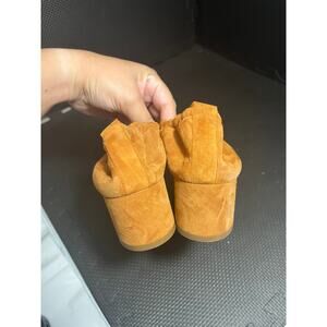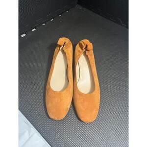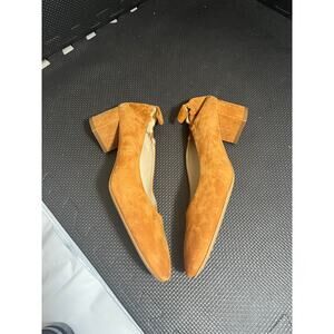 Everlane The Day Heel Women 11 Orange Suede Leather Pumps Cinch Heel Block Shoes