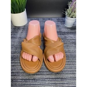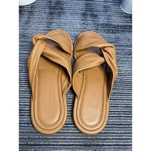 Everlane The Day Twist Size 7.5 Desert Tan Nappa Leather Slide Sandals MRP$145/H