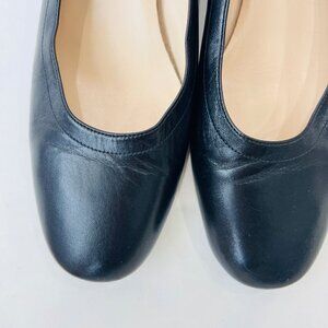 Great used condition Everlane block heels in black color. These have some creases front, light dents on the back of the heels , worn signs bottom soles, everywhere else are in excellent shape. The leather material is soft and high quality, sturdy blocks heels and comfy insoles. Please check for more details in pictures.