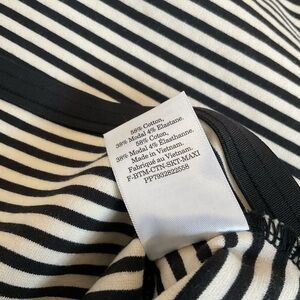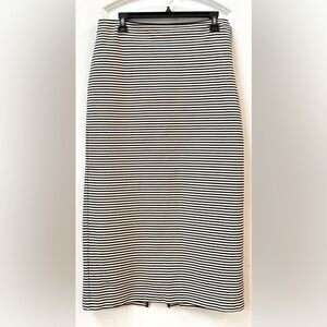Everlane - The Dream Maxi Skirt in Black and White Stripe. Cotton/Modal/Elastane. Side Hidden Zip Closure. Size Large measures a 30” Waist x 33” Length. In Excellent Used Condition