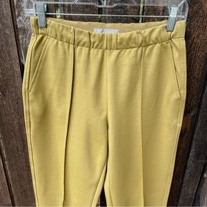 Everlane The Dream Pant in Fennel Seed Sz Small. New without tags. Color is a tan yellow tone. Soft double knit fabric with tailored look & everyday comfort. Front has Pintuck detailing. 2 front pockets & 2 back pockets( still stitched closed). Elastic waistband with inner drawstrings. Cotton, modal blend with stretch. Tapered leg. Great condition