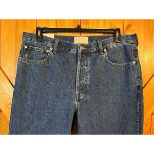 Everlane The Everybody Jean Mid Rise Button Fly Distressed Size E10 Short 36” waist 29.5” inseam 12” rise unisex Jeans (0461)