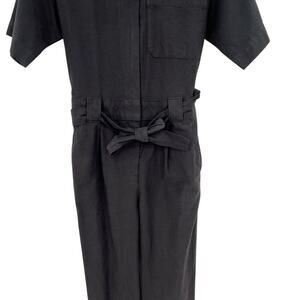 Everlane The Fatigue Jumpsuit Short Sleeve Crop Belted Cotton Linen Black Size 0