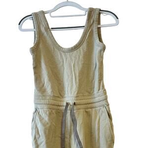Everlane The French Terry Jumpsuit Romper •XXS•Drawstring Waist Scoop Neck Khaki