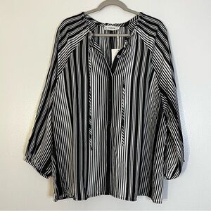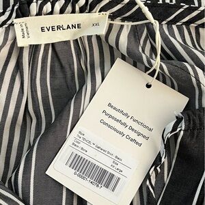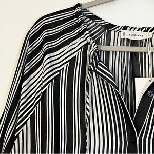 Everlane The Gathered Shirt Striped Black White Long Sleeve Blouse Size XXL NWT