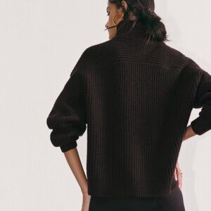 GORGEOUS sweater. It's got an elevated zip neckline, a relaxed fit, in a soft ribbed knit. The best part? It’s made of extra-fine merino wool that’s been washed and boiled for a softer, warmer, and more durable feel, much like your feelings after wearing it.