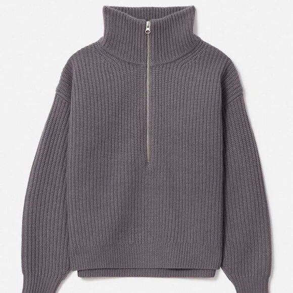 Everlane The Half-Zip Sweater in Luxe Merino - Plum Grey Medium