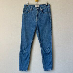 Everlane The High Rise Skinny jeans in classic medium blue wash. Flattering ankle-length cut. Made from Everlane’s premium denim with stretch for comfort. Excellent condition. Size 26 - 13.5" waist; 10" rise; 25" inseam.