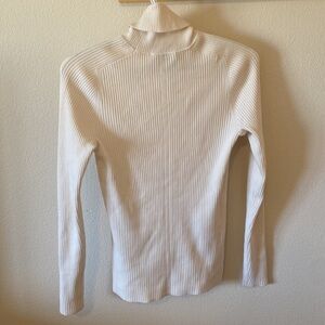 Everlane The Italian Merino Rib Turtleneck in Bone Color Size Medium. 80% wool. Only worn a few times and in very good condition. Price is firm. Comment for pictures with measurements. I am not sure what size the models are wearing and I think the last model might be wearing a different color.