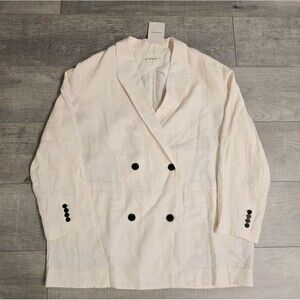 Everlane The Linen Double Breasted Oversized Blazer in Cream Bone Size 16
