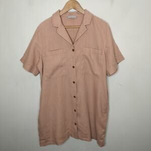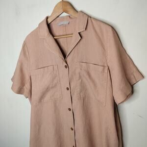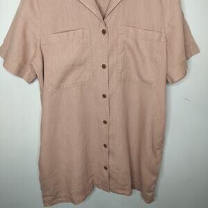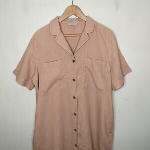 Everlane muted pink linen short sleeve button up shirt dress with pockets. Size L. (22920)