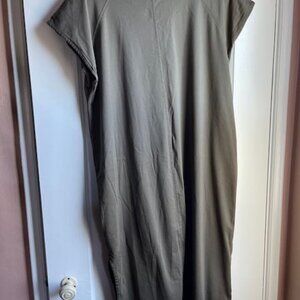 Everlane The Luxe Cotton Side-slit Tee Dress in Olive