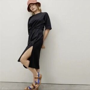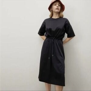 Everlane The Luxe Cotton Tie-Front Tee Dress XS Black New.