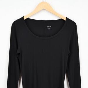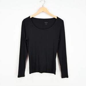 Everlane The Luxe Rib Long Sleeve Scoop Neck Tee Black Size Large NWOT