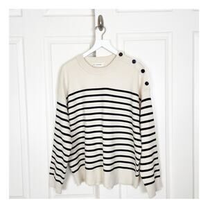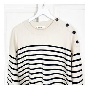 Everlane The Mariner Striped Button Shoulder Sweater Wool Cotton