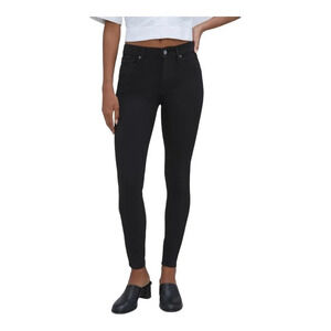 Mid-rise with skinny leg. Slim fit throughout. Sits just below the belly button. Rise: 9 5/8”. Inseam: 28.5”. Leg opening: 9 1/8” (size 28).