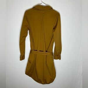 Gently worn and in great condition! The only flaw is that the top two buttons on the front of the dress are missing. The color looks slightly more tan/brown in person and less orange than in does in the model photos.